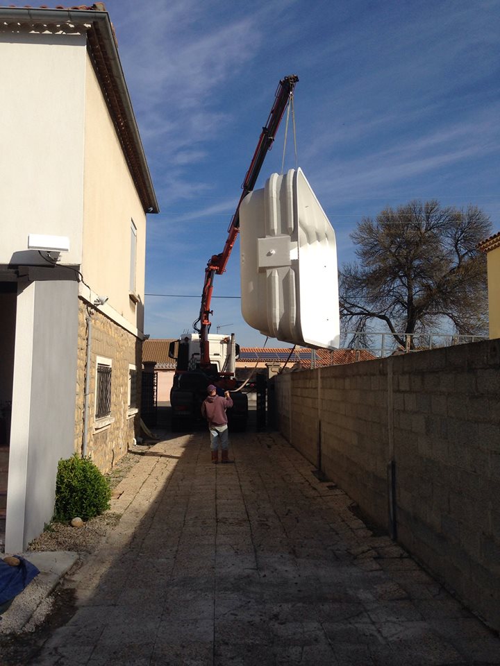 La livraison est l'étape la plus impréssionnante pour le client. En effet nos camions sont équipés de GRUES AUXILIAIRES et de remorques portes piscines fabriquées sur mesure.