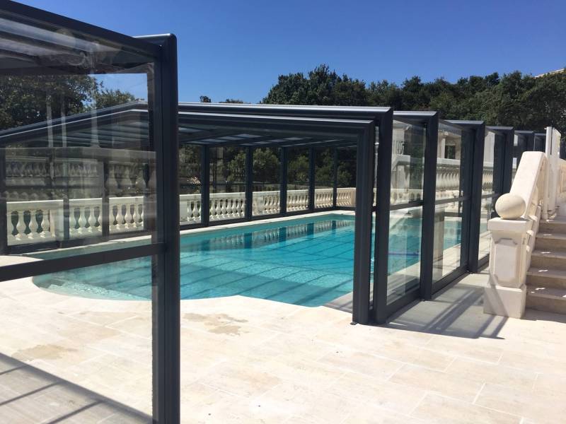 Déclic Piscines vous propose via son partenaire SOKOOL : un abri de piscine 3 angles télescopique Haut CASSIOPÉE et adaptable à la quasi totalité de nos piscines.