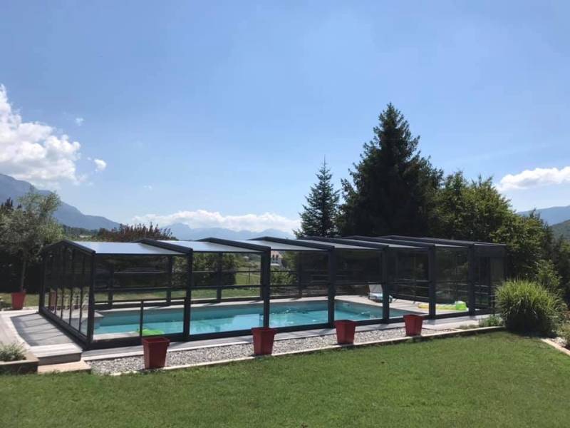De fabrication 100% française avec des matériaux de qualités cet abri permet de créer un espace conviviale avec une belle hauteur permettant un aménagement arboré afin de profiter d'un bel espace de vie en extérieur. Facile à manipuler, vous apprécierez sa modularité et son design moderne lui permet de s’intégrer au mieux à votre extérieur. L’abri haut laisse entrer la lumière et les rayons du soleil pour une clarté absolue et préserver efficacement la température de l’eau pour une baignade toute l’année.