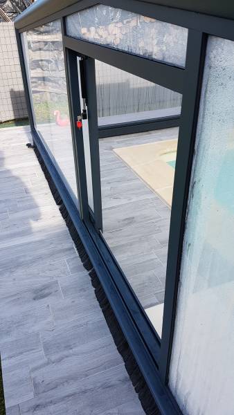 - Toiture en polycarbonate 8mm alvéolaire et et façade/fond en polyméthacrylate transparent 4 et 5mm